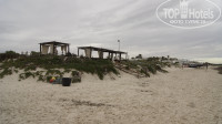 Пляж относительно соседних обустроен и по нему проходятся граблями и убирают (плюс- матрасы на лежаках). Пару раз в день на пляже даже можно поймать официанта, но лучше 20 метров до бара дойти и взять"ту бир" или ядовитый юппи. Бар прямо на пляже (там же панини, гамбургеры- не ел). Вход в море очень пологий (метров 50 по грудь/пояс), по центру дно твердое, по краям по щиколотку проваливаешься в песчаную массу. В целом по пляжам Монастира/Махдии/Сусса- и пляжи и море грязноватые. При шторме выносит на берег водоросли и мусор, которые на пляже отеля стараются убирать, а за территорией они лежат (романтическая прогулка по какашкам, пластиковым бутылкам, водорослям).