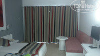 2. Территория: ухоженная; не слишком большая, но и не маленькая: от въезда до корпусов метров 50-100 по дороге мимо пальм, кактусов, стриженого газона. Есть теннисный корт, мини-гольф, футбольное поле под мини (просто газон с воротами), детский клуб отгороженный не маленький, аквапарк (работает не всегда, по погоде), 3 бассейна (аквапарк,у главного корпуса и закрытый), СПА (цены посмотрел, намного дороже Турции, хотя девушкам может и понравится талассо), парикмахерская, магазин, мед. брат. В пасмурную погоду,утром и вечером (особенно) много комаров, наш "Москитокс" спас на 80%, в номере спирали спасали. Много мух (в ресторане не видел, но на пляж очень), пчел (у бассейна, лотков с напитками на пляже).