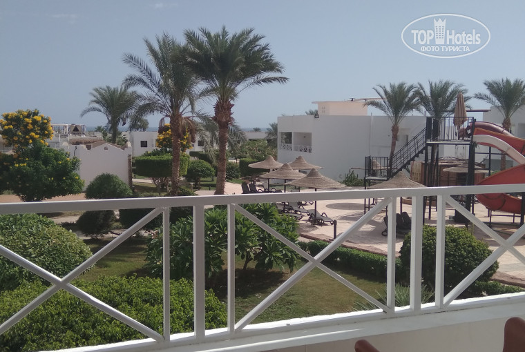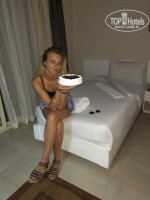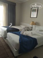 Номер дали хороший. Нас поселили не в главном корпусе, а в отдельных котеджах с балконом и видом на маленький бассейн с горками и море видно было. Всё работало (кондиционер, утюг, чайник, холодильник, сейф, фен, телевизор), были белые полотенца и халаты. За тарелку с фруктами тоже большое спасибо! В номере убирали и крутили нам из полотенец всяких лебедей, слонов и крокодилов.