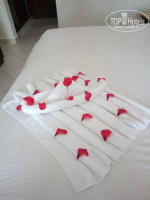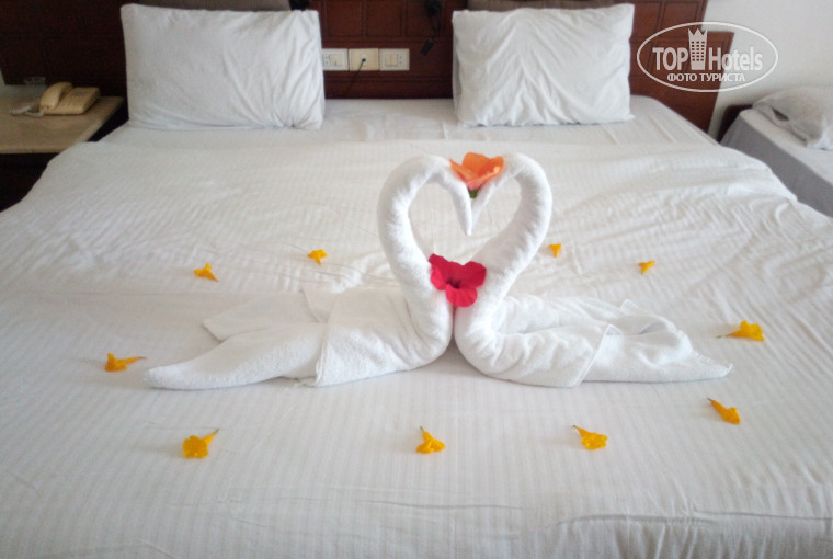 Уборку предлагали каждый день, но мы отказывались... Нам через день меняли постель и полотенца, крутили лебедей и приносили цветы... Денег мы не оставляли, баловали нашими шоколадками, их там все любят. ) Халатов, тапочек, шампуней, утюга и чайника в номере у нас небыло, но это, как я поняла, зависит от цены путевки. Это всё было у тех, кто купил путевку дороже... Остальное, как положено: холодильник, сейф, телевизор, фен, мыло....