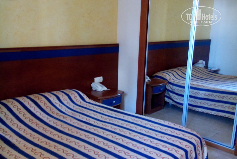Заселение. Номер дали в корпусе Акапулько, кажется, 3-й этаж. При входе в номер резкий запах мочи. Номер вроде убран, откуда запах? Решетка кондиционера черная, возможно копоть, возможно плесень, что намного страшнее. В номере 3 кровати, телевизор времен царя Гороха (с кинескопом), занимал половину стола. На бра –женский длинный волос, неужели горничная не заметила этого «украшения»? На одной из тумбочек пятно от сладкого напитка, тумбочки протереть видно никто не заморочился (пришлось это делать самим влажными спиртовыми салфетками). Санузел в отвратительном состоянии. Эмаль на ванне стерта до металла (серое дно), все краны ржавые, сиденье унитаза расколото, вода скапливается в раковине и не уходит (засор), крючки, полочка и прочее – видавший виды пластик, зеркало одно, крошечное над раковиной, в номере зеркал нет. Маленький балкон выходил на улицу, и под ним были вентиляторы из ресторана: они работали до 3-х ночи, потом включились в 6 утра. Я так расстроилась, что даже не стала распаковывать вещи и не сфотографировала все это безобразие. Муж пошел на ресепшен просить замену. Свободные номера были только в Копакабане с доплатой 260 ойро. Доплачивать за номер смысла не вижу, тем более что там мы только помыться, переодеться и переночевать (но в приличных условиях). На ночь остались в этом номере: балкон не открыть – шумят вентиляторы, кондиционер не включить – фиг знает какая зараза из него полетит. Переночевали отвратительно.