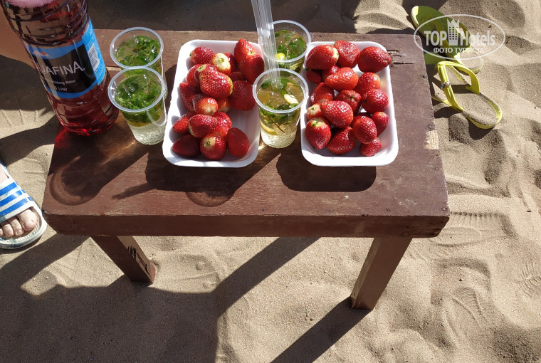 Покупали клубнику 1$ сладкая! В отеле кстати много фруктов : апельсин иных гранаты, гуава, дыня, мандарины , финики . Иогурты вкусные , Съездили в Сохо погуляли ,для разнообразия один раз можно , из отеля бесплатный автобус . На экскурсии не ездили были везде, на яхту хотели , но не рискнули , ветренно очень в море было , зима всё же. Водичка в море теплая 24, выходить было прохладно ,но всеравно хорошо.