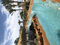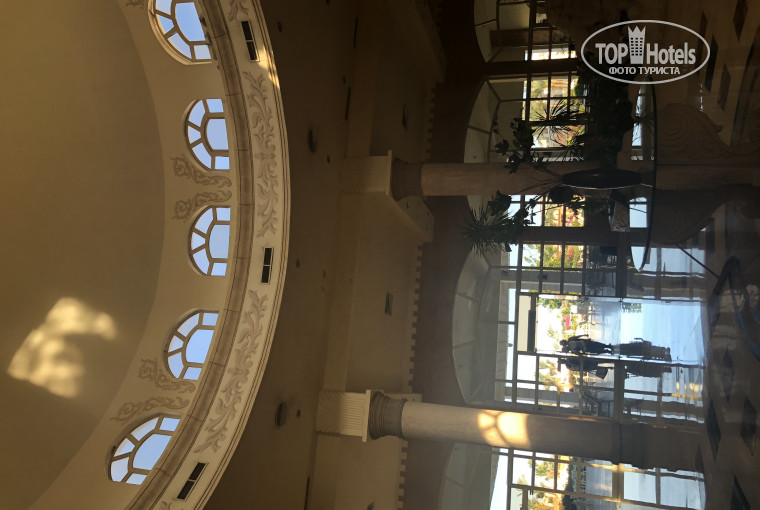 ТЕРРИТОРИЯ отеля все 5 с + ! Огромная, шикарная, зеленая, куча цветов, пальмы. По газоном гуляют цапли) Выходишь из номера и глаза не нарадуются)) Бассейнов много, но подогревается один возле аквапарка. Горки работают по очереди. Лежаков много и на территории и на пляже. Пляж у отеля большой, понтон по сравнению с соседними отелями не такой длинный. Примерно на середине понтона есть заход в море-там песочек и неглубоко. В конце понтона до дна не достаешь, но поплавать есть где.