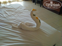 Вот с обслуживанием номера есть проблемы. Даже не с обслуживанием как таковым, а с сервисом в общем. Отельный мыльный набор (мыло, шампунь, гель) — про заезду отсутствовал. Звонили на ресепшн, принесли назаватра — но без мыла. Опять звонили, и опять на след день приносили. Такая же ситуация с водой. То приносят, то нет. Проблема с сейфом — был с севшими батарейками, позвонили-пришли-поменяли — на след.день сейф снова сел. Опять, звонишь, просишь, приходят-меняют. Эта фигня ужасно раздражала — постоянно приходится тебе клянчить то, что тебе, как бы, положено по умолчанию. Вместе с тем — к самой уборке номеров нет претензий.