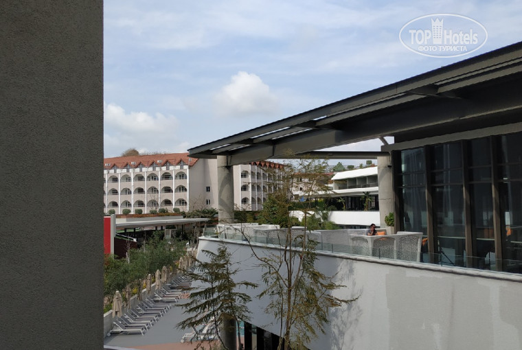Рядом с спа-центром спортивный зал, тренажеров достаточно. Чуть дальше уютный бар, теннисные столы, выход к бассейну. В баре за бассейном с 15 до 16 пекут вафли и угощают мороженым. На этаже с рестораном есть конференц-зал, комната для курения, бар с уютной зоной отдыха в помещении и на веранде. У самой стены собрана целая библиотека из книг на многих языках мира.