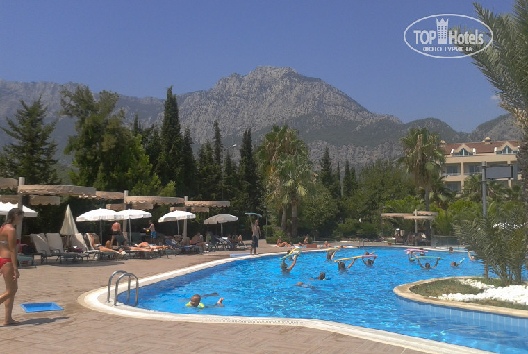 Всем здравствуйте! Были в отеле с дочерью. Давно конечно, но воспоминания остались хорошие. Отель с небольшой территорий, ухоженные газоны, цветы и пальмы. Есть зона для анимации, вечером проходят концерты, игры, аниматоры стараются, заряжают хорошим настроением. Бассейн с пальмой посередине, справа есть лобби бар, слева от него пекут гезлеме. Номер был на сторону соседнего отеля, было шумно, но спасали плотно закрывающиеся двери. Номер небольшой, уютный. Ресторан находится на первом этаже, большой, с двумя залами. Питание очень хорошее, как наверно во всех ресторанах в хороших отелях. На ужин рыбу жарят на улице. Мы были в Рамадан, по окончанию Рамадана был праздник. Столы просто ломились, и мясное, и рыба,фрукты, очень много всего. Кстати, в честь окончания Рамадана в магазинах делают большие скидки на покупки. Попробовала кюфте, это котлетки из сырого мяса, растирают в фарш, добавляют острый перец, кушают сбрызнув лимоном) необычно, остро, все свежее. На улице жарили рыбу, выпечки было просто много. Очень нравится смотреть как резали арбуз, ловко отделяя мякоть. Персонал отеля старательный, вежливый. На минусовом этаже есть бассейн, вода очень холодная, массажисты хорошие. Спасибо Кемрану за профессиональный массаж. Во вторник сходите на местный рынок за покупками, купите свежих фруктов от фермеров. Не доходя до арки названия поселка, слева есть "Мигрос". Впечатления от отеля хорошие, убирают номера хорошо, всегда чистенько. . Море близко через дорогу. На пляже есть помощник, принесет вам и матрац, и лежак. Вай фай ловит у ресепшен. Вечером гулять одно удовольствие, магазины через дорогу, купите все, что вам нужно, здесь также выжатые соки из апельсина, граната, и не забывайте торговаться в магазинах. Остановка находится справа как выйдите из отеля. Можно съездить в Кемер за покупками, погулять. Плата за проезд наличными, лучше лирами. Съездите на концерт знаменитой на весь мир танцевальной группе, летом они выступают в открытом амфитеатре, в Аспендосе, на "Огни Анатолии", незабываемый концерт! В отеле есть представитель магазина кожи в Кемере, бесплатно отвезут и привезут.