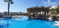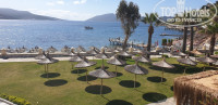 Про море и говорить нечего - вода +19, ни о каком купании речь не шла вообще. Да и цели такой не было, мы прекрасно понимали, что в мае месяце Эгейское море будет еще очень холодным. У отеля есть свой кусочек песчаного пляжа, как и у соседней пятерки Azka. У отеля справа - только пирс.