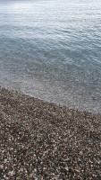 ПЛЯЖ. Небольшой. Галька средняя и крупная — до моря дойти нужны тапочки. Это мое мнение, но может кому-то комфортно по камешкам ходить. Мне было больно и сильно нога утопает в камни, идти неудобно. Море чистейшее, прозрачное. Не купались. В начале мая вода была градусов 17. Но народ купался, взрослые. На пляже, если смотреть на море, то справа зона для всех, а слева зона только 18+. Лежаки, зонтики все удобные. Полотенца пляжные ждут вас при заезде в номере в отельной пляжной сумке. На пляже холодильник с напитками, соки пакетированные, айран, вода. Пирс небольшой, без бара. Спасатель имеется. На пляже удобные дорожки для маломобильных людей и людей с колясками.
