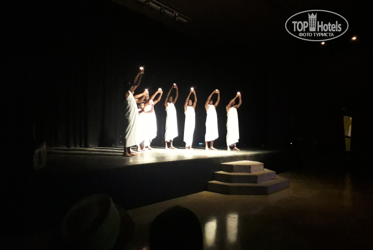 Вечером в закрытом "амфитеатре"проводились шоу-таймы, зал мне очень понравился, большой, просторный, с мягкими накидками под филейную часть) впереди сидения можно было поставить бокалы с напитками, очень комфортно (с другой стороны здания есть амфитеатр на улице, там шел ремонт). В основном вечерние шоу были представлены танцами. Надо отдать должное, что танцуют они очень хорошо и выкладываются в танце на все 100%, но это только в танце(( Нет взаимодействия со зрителями, ну и соответственно все на французском языке.