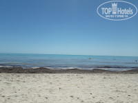 Поскольку я в Тунисе отдыхаю 3-й раз, а на Джербе 2-й, пляж оцениваю на 4 -, заход в море в основном пологий, но есть небольшое резкое углубление сантиметров на 15 и местами (левее) на дне ощущались то ли камни, то ли коряги. На мой взгляд портят картину береговой линии волнорезы, сооруженные из глыб через каждые 200 метров (как бы разграничивая пляжи отелей). И тем не менее этот пляж на Джербе лучше, чем я видела пляжи на материке, но хуже пляжа отеля на Джербе, в котором я отдыхала ранее.