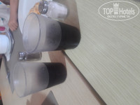 3. Грязная посуда, стаканы и тарелки, грязные столы . На обед взяли вино в станах, на фото видно как он помыт- на нём ещё утренний фреш, что самое смешное, он сохраняется до ужина, а также помада и пр.