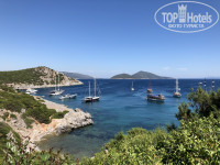 Отель расположен в Гюмбете, Бодрум в другой бухте, но ехать на маршрутке минут 15-20, даже нет никакого разделения между ними. Маршрутка до Бодрума останавливается прям возле отеля и это конечная. Гюмбет плавно перетекает в Бодрум. Отель находится прям сбоку посёлка , поэтому вокруг много еще строящихся отелей и апартаментов и тишина) нет турецких уличных магазинов, кафе и прочего, но до всего опять таки можно доехать за 5 минут на маршрутке, мы даже гуляли пешком.