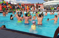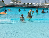 бассейны чистые. теплые. лежаков полно. но лучше занимать до 10ч. бассейн с волнами включают 2 раза в день на пол часика.