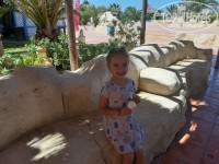 Работает с 9;30 до 12:30 и с 14:30 до 17:30. Две девочки . Рисуют с ним . Много!!! много пазлов разных видов, размеров , качества !!! Водят их после 16:00 за мороженным - усаживают около бассейна на ступеньки и приносят каждому .
