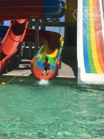 В купальниках не пускают !!!В нем берёте бутылки с водой ( можно с газами и без ) . В нем : Пиво, вино, кола, чай и кофе с автомата, коктейли. Тоже есть очереди . Тоже дочку обслуживали без очереди ☺️. вечером алкогольный Махито стоит в большом чане , половник весит и стаканчики - подходи, налевай.