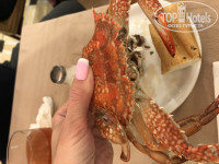 В ассортименте рыба, индейка, говядина, печень, бистроганоф, гамбургеры, пицца. множество гарниров на любой вкус. Это рис, картофель, макароны, запеканки, овощи на гриле, на пару. Все в разных видах. Были крабы. На завтрак была рисовая каша, яйца, сыры, блинчики, вафли, пончики, выпечка, мюсли, йогурты, круасаны, свежевыжатый апельсиновый сок. Напитки. В общем каждый найдёт по вкусу своё блюдо.