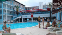 После того как вы доплатили,вы получаете номер с видом на стену, номер без горячей воды(бывает иногда днем еле теплая). Вы получаете грязный не убранный номер с рыжими жильцами( кстати их тараканы размером с наших мышей). Если захотите покушать например не руками и из тарелки, сидя за столом, то вам нужно быть очень ОЧЕНЬ большим и наглым, потому что по другому в ресторан не попадешь. Очередь обычно занимают за 15 минут до открытия, потому что потом не будет свободных столов, не будет посуды(которая настолько грязная,что там просто остатки еды засохшей на ней). Ну про бассейн с лежакми я писать не буду,это и так понятно, что на 700 человек 20 лежаков маловато. На ресепшене,когда я спросил почему в ресторане присесть даже не хватает столов,ответили на 500 человек рассчитано, а приехало 700, поэтому ваши проблемы.