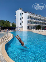 Территория у отеля маленькая, но ухоженная, очень чистый бассейн, неактивная анимация (может быть, потому что было самое начало сезона). С едой все хорошо: изысков нет, но и дефицита тоже )) Всего всем хватало, овощи, фрукты, рыба,мясо, курица - все каждый день и в разнообразии. Номера да, скромные, но полотенца чистые, меняли по запросу, убирались каждый день, горячая вода была чуть с перебоями, т к было прохладно и она просто не успевала прогреваться за ночь, но вечером принять душ в теплой воде возможность всегда была! Расположение у отеля очень удачное, рядом есть где погулять, рынки, магазины, автобусная остановка. Пляж в 5 минутах. Пляж небольшой,при нас там делали ремонт, отсыпали песочком, налаживали лежаки и зонтики. Места всем хватало. Море чистое! Про отношение персонала - у нас было все прекрасно! Вежливо, услужливо и доброжелательно! Никаких нареканий в этом нет. Про напитки в баре: слышала, что жаловались, что чего-то нет, пили кофе - очень вкусный, на удивление, хоть и из автомата, пиво - вкусное, легкое, остальное не пробовали.