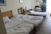 2. СОСТОЯНИЕ НОМЕРА. Внутри оба номера были достаточно аккуратны, уютны, просторны. В последнем номере: две полуторных кровати (по просьбе поставили еще однушку для дочки), ЖК-телевизор, бесплатный сейф, холодильник, столики, стулья, чайник, наборы для заварки, чай, кофе, сахар, ежедневно добавлялась питьевая вода. Просторная ванная комната, наборы для душа, сушка для пары полотенец (на балконе не разрешают сушить). Так как на четверых явно мало такой сушки, сушили все на балконе. Замечаний никто не выносил. Балкон большой: столик и кресла( вид на бассейн, ресторан, лобби, город, частично горы и море.). Замок балконной двери не работал.
