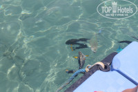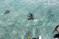 7. МОРЕ, ПЛЯЖ. Ради моря ехать стоит именно сюда!. Классный вход в море. Песок. Детям шикарно поиграть в песке, погонять в норках крабов. Много разных видов рыб. Кормить нельзя. Но если аккуратно и неприметно, то Вы увидите очень большое количество рыб. Поплавав с маской в радиусе 50 метров найдете много классных кораллов, увидете красивых рыб размером сантиметров до 40. Наблюдали даже ската. С лежаками проблем не наблюдалось, всем места хватало. Два душа, туалет. Бар с алкогольными и безалкогольными напитками, даже вода теплая питьевая есть для маленьких детей. На пляже найдете много разных экскурсий, нанесение тату хной.