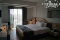 В отеле имеются смежные номера (с дверью в соседний номер, очень переживала, что заселят в такой, таких номеров 4 на каждом этаже, перед бронированием писала туроператору просьбу о заселении в не смежный номер, заселили в обычный). Отель рядом с пляжем, но с плохим (по сравнению с центральными пляжами Протараса), до хорошего пляжа пешком минут десять. Также минут 10 до ближайшего супермаркета, в отеле тоже есть маленький магазин, но цены там дороже. Сам ресторан где проходит приём пищи расположен в помещении, на улице столиков нет, вернее стоики есть, но выносить туда еду нельзя, если только чашку кофе на завтрак. Есть маленький бассейн, народу там всегда было много, до 9 были свободные лежаки, позже уже всё занято.