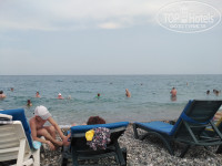 До моря идти спокойным шагом 5 минут, есть отдельно выделенная территория под отель с шизлонгами: мы были и утром и днем и вечером и всегда находили себе 2 свободных шизлонга. Там же на пляже есть крутая русская дискотека с чудо-барменом, который поднимает настроение с первого коктейля.