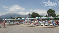 Чистейшее море, под ногами галька, лежаков много, всегда всем хватало. Из минусов- отсутствие бара на пляже.