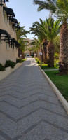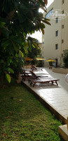 Теперь территория! Все компактно, она не очень большая, но все очень даже чисто, аккуратно, за ней следят, она вся в зелени, ее убирают, поливают каждый день, грязи вы не найдете. Кругом пальмы и декоративные кусты, фигурно постриженные.