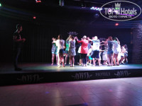 2. Анимация - в отеле с 10 до 23. Ровно в 23-00 музыка выключается, и все желающие едут на дискотеки. С утра зарядка, часов в 11 аква аэробика в бассейне с горками, потом конкурсы на воде и пр., после обеда водное поло. Горки работают по 2 часа до и после обеда. В тихий час с 13 до 15 музыка не орет, дети могут поспать. Мини диско в 20-30 (ребенок в восторге, детей много), потом развлекухи для взрослых, Видели Турецкую ночь(неплохо), мистер отель, бинго и пр. Аниматоры умнички, стараются, два парня турки(по русски отлично) и русская красотка. Была еще одна девочка из СНГ типа детский аниматор, видели стол с раскрасками, но рисующих детей никогда не было, впрочем как ее рядом)
