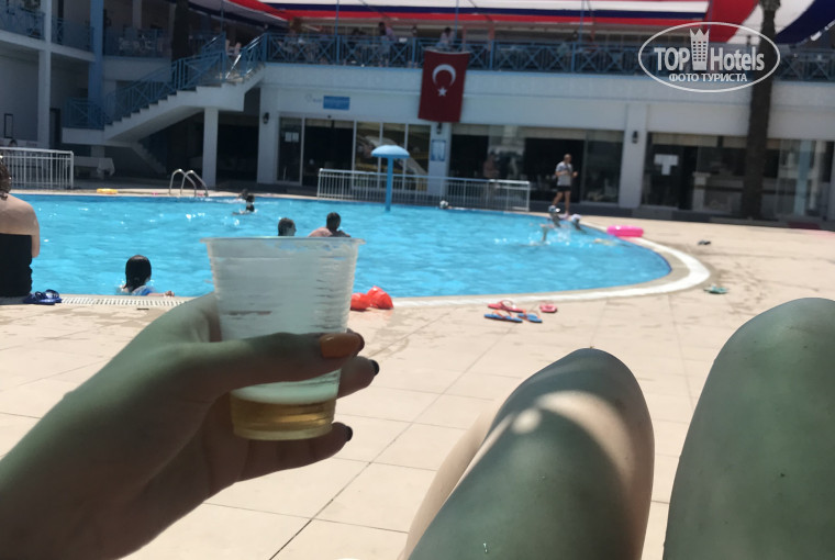 Насчёт лежаков , около бассейна реально сложно урвать , но возможно ) мы с подругой нашли выход и купили двойной матрас и загорали в бассейне на нем )