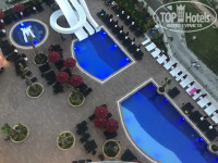 9. Терриятория отеля не большая, три бассейна (один на верхнем уровне у спа, один с горками и один с водопадиком. Для детей круглый с горками. У бассейна ходят постоянно уборщики и выкидывают мусор, следят за чистотой, хотя, я не понимаю, почему люди не могут выкинуть сами стаканчик или тарелку и все это стоит на столах и ждет уборки, благо, мусорки на каждом шагу.