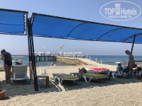 5. Море. Проход к морю по подземному переходу, там же сидит отхранник. прямо каменистый заход, но навесы и лежаки в достаточном количестве. Если пойти налево, то площадка для игры в воллейбол и вход в море на любой вкус. Хочешь с пирса, хочешь с синего пантона, хочешь с берега. Вход прекарсный, песочек рядом с пантоном, попадаются каменые плиты, но совершенно не мешают.