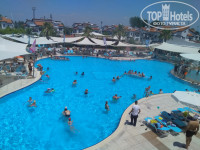 Теперь про питание. Основной ресторан сложно называть таковым, скорее это столовая )). Когда мы перед отъездом читали отзывы, то не радовало, что писали как там не убирают грязную посуду. Похоже, что они делают выводы, набрали больше персонала и с этим проблем нет. Удивило даже, что официанты ездят между столами с тележками и предлагают напитки и спиртное. Не скажу, что в питании всё идеально. Сосиски и колбаса- гадость! Молочные каши есть невозможно. Много переперчёного - рот горит! Просто после двух дней можно понять что для вас подходит. Вкусы у всех разные. Отелю не хватает второго ресторана для разгрузки. Очень много народа! Как на вокзале! По утрам на завтраке большие очереди за яичницей и блинчиками! Но всегда есть что-то вкусненькое в зоне барбекю ) Из фруктов в это время : сливы, персики, нектарины, арбузы дыни, черешня, абрикосы ... Ещё удивило,что можно выносить еду из ресторана! Многие выносят и мясо, и фрукты... Алкоголь получше в Лобби баре над столовой. Ещё плюс,что он работает 24 часа! Такого я не встречал. Местный алкоголь - для изжоги.