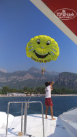 *Развлечения на пляже: играют в волейбол....очень удобно, что рядом есть водные развлечения "Almila"- ватрушка, банан, парашют, гидроциклы, прогулки на катере, водные лыжи. Я с сыном полетала на парашюте. Летали в 9.00, т.к. в 10.00 уже печет солнце. Стоимость 30$ ребенок и 40$ взрослый - 10 минут полета, давно хотели, не пожалели, положительные эмоции, красивый вид сверху, по времени достаточно, казалось летали дольше. Разрешили на катер взять мужа, фоткал и снимал видео, но они еще берут своего фотографа. Если честно фотографии не стоят тех денег, которые он просит, если все таки после просмотра вам, что то понравится, то торгуйтесь с ним до последнего (скинет фото на вашу флешку за деньги или напечатает). Прокатились на банане семьей - со скидкой за троих отдали 10$. На пляже продавали кукурузу - 1 штука 1 $. Продают белые, соленые семечки - 1 пакетик (3 стакана) - 2$ - очень вкусные.