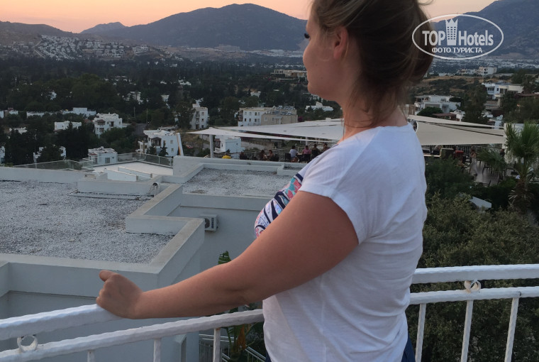 В Бодруме отдыхали впервые, жили в Риве прекрасные 7 дней. Впервые были в отеле такого формата: помимо основного здания на территории располагаются бунгала, большая территория, много ступенек, зелени, все ухожено и красиво. Три бассейна, 2 из них с баром. Бар на нижнем бассейне представляет собой террасу с шикарным видом на бухту, можно просто сидеть и наслаждаться. Такой же вид и из ресторана, в котором подают питание «шведский стол». Питание разнообразное, много мяса, овощей, рыба и мясо на гриле, рулетики с мясом, шаурма, разнообразие десертов, мороженое, венские вафли и многое другое. Неплохие вина в баре: белое и розе, хорошее свежее пиво. Номер был уютный, светлый, балкон с видом на море - просто шикарно. Убирались всего два раза, только протерли полы и все. Персонал отзывчивый, особенно менеджер Айдын и девушка с ресепшн (имя не знаю, к сожалению) помогали, если было необходимо, решали все очень оперативно, за что им большое спасибо. До пляжа 15 минут, обратно нужно подниматься в горку, но нас это не смущала, наоборот, возможность подкачать ноги и ягодицы На пляже бесплатные лежаки, мы далеко не ходили, были на белых лежаках. До центра Бодрума до 5 утра ходит маршрутка за 3.25 лиры с человека, сесть на неё можно прямо возле отеля, ходят постоянно. Экскурсии мы у гида не брали, потому что знали, что у них огромная накрутка, брали экскурсии у парня из Бодрума, он работает в самом центре, зовут Ариф, отлично говорит по-русски, цена ниже, чем у гида на 30$(!), так он еще и нас проконсультировал, подсказал, где что лучше брать и где менять деньги, оставлю его визитку, думаю, обязательно пригодиться. Вечером можно посидеть в баре, попить коктейлей, покурить кальян под музыку. Отель 16+, детей нет, для меня это было большим плюсом. Мы довольны отдыхом, не пожалели, что проживали в Риве. Остались только самые приятные воспоминания об отдыхе, надеюсь, что мы вернёмся вновь!