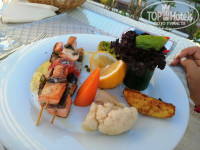 и не важно, каким по счету Вы будете заселяться, номер за Вами уже закреплён. Приехали в 19 часов, нам одели красные браслеты и мы пошли на ужин в ресторан Максимус. Он состоит из зала и трасса. По какому принципу они дают красный или чёрный браслет, я так и не поняла, но, мне показалось, что чёрных было больше и знакомые жаловались, что в ресторане нона постоянно перебои со столиками. В ресторанах, во всех обслуживание на очень высоком уровне, нет очередей, блюда постоянно обновляются. В основном ресторане есть детский ресторан с телевизором, наши дети предпочитали его, а мы могли спокойно кушать в основном зале. Хочу заметить, что вообще в отеле почти нет очередей, все достаточно быстро решается. Продолжая вопрос питания, оно повсюду🤭. Есть питание с 12 до 16 в баре у моря, перекусы у бассейна, с 16 до 18 в лобби кондитерская. Очень понравился рыбный а-ля-карт ресторан, если пойдёте, нам больше понравился шашлычок из лосося.