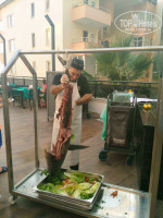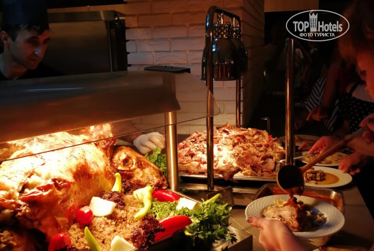 На ужин добавляют на десерт большие торты, больше фруктов, обязательно блюда на гриле: рыба, мясо, даже печень безумно вкусная.