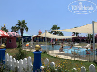 Отдыхали в июле с тремя детьми. Что хочется сказать: в целом отель очень даже неплохой. Территория отеля очень большая: есть детский городок, домик Тарзана, много зелени. В отеле одно большое четырехэтажное здание и очень много вилл. Мы приехали в 10 утра, нас сразу заселили в двухкомнатный двухэтажный номер в villa family. Отель старенький, поэтому и номера в виллах соответсвенно такие же, ремонта не было. Мы не придирчивые, поэтому чистоты и аккуратности нам было достаточно. В номерах сейф и мини-бар предлагаются бесплатно, Мини-бар ежедневно пополняется безалкогольными напитками: сок, вода, минеральная вода, пепси, фанта. По запросу бесплатно в номер предоставляют - детский горшок, раскладной манеж, чайник, покрывала, одеяла и т.д. По всей территории отеля расположены бары. Отдыхающих в отеле очень много, всвязи с этим функционирует три ресторана. У нас были красные браслеты (благодаря сопроводительному письму от Top Hotels), мы могли кушать в двух ресторанах в главном и в ресторане Максимус. Кормят неплохо (питание однообразное, рыбу пересушивают, на завтрак еда одна и та же, выбор небольшой. Но были и тематические вечера: раз давали ооооочень вкусные кольца кальмаров-был рыбный день, а ещё давали роллы). По средам и по субботам проходятся тематические вечеринки (белая вечеринка и красная вечеринка), приезжают профессиональные танцоры, несколько раз в неделю проходятся шоу в амфитеатре ,выступают профессиональные танцевальные коллективы.