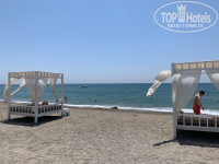 У отеля два пляжа общий и отдельный для красных и чёрных браслетов, куда мы все время и ходили. Несмотря на то, что места позагорать никогда не было. Потому что люди занимают места и не пользуются ими. Мы приходили, расстилали на песке полотенце и спокойно отдыхали и загорали. Младшей дочке год, поэтому через пару часов уходили укладывать ее спать. Один раз нам место уступили, а один раз сотрудник отеля, увидев, что в бунгало просто долгое время лежат полотенца, забрал их, а нам сказал располагаться и отдыхать. За что ему и спасибо.