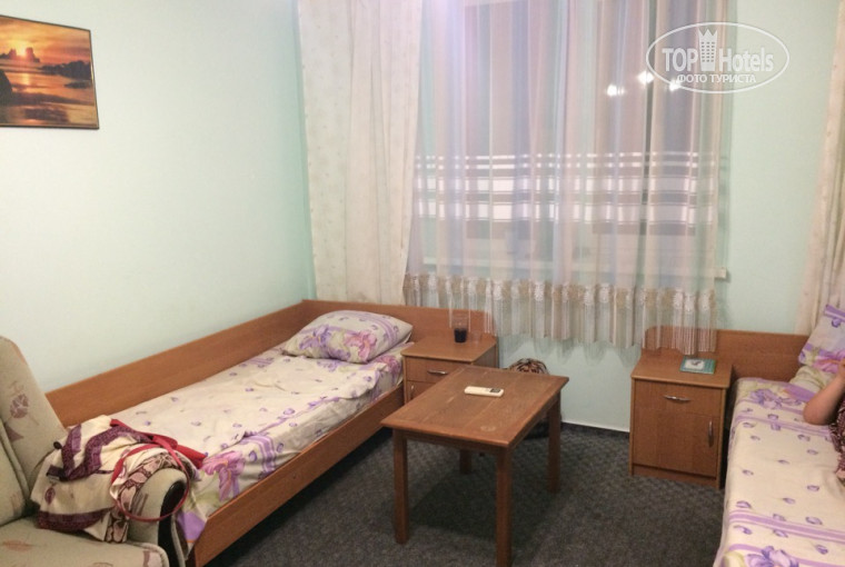 В предыдущем отзыве Елена всё подробно описала. Я была с ребёнком 12ти лет. Номер без балкона, но за окном были натянуты верёвки. В номере нормальная мебель (кровати, кресло, шкаф, столик, трюмо, холодильник на нём телевизор, кондиционер). В санузле даже был освежитель воздуха. Туал. бумагу, средства личной гигиены регулярно докладывали. Лежаков днём (после обеда) хватало всем, а вот с утра много занятых полотенцами (часами никто не приходил), ох уж эта дурацкая система бронирования лежаков! Отдельное спасибо управляющей Елене Ивановне и официантам, и поварам! Повара готовили по-домашнему, вкусно. Видела как стараются и действительно детки любят аниматоров, команда из 3-4 человек, которая не даёт детям скучать: рисовашки, поделки, зарядка, акваэробика, танцы, мультики. Как турагент могу с уверенностью сказать, что данный вариант размещения можно смело рассматривать, для пляжного отдыха, чтоб уехать к морю от всех по-дальше) В этом пляжном кооперативе, состоящему из 3 малюсеньких улиц, можно хорошо отдохнуть и найти всё необходимое: кафе, магазинчики, алкоголь (вино, пиво), мороженое, домашнюю выпечку, фрукты. За время нашего отдыха море было великолепно, иногда гладь, иногда волна, в любом проявлении оно прекрасно. Один раз видели стаю дельфинов. Крым мне очень понравился. В эту поездку смогли побывать в Севастополе и проехать на машине весь ЮБК. При обратном трансфере доехали (ночью) за 2,5 часа до Симферополя, водитель угощал конфетами, чтоб не укачивало на серпантине). Гамачок спасибо за отдых! Я смело вас рекомендую своим туристам!