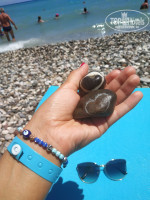 На пляже галька, кто не привык к камушкам - покупайте спец.обувь, стоит копейки. Заход в море оборудован, так что, можно и без этой обуви, но большинство в ней. Я обожаю камушки, красотища, и привожу домой всегда самые необычные, в этот раз тоже привезла.