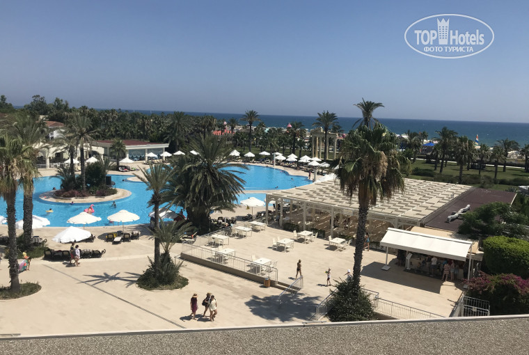 Территория отеля составляет 180.000 м2. В отеле одно большое четырехэтажное здание и очень много вилл.В номерах сейф и мини-бар предлагаются бесплатно, Мини-бар ежедневно пополняется безалкогольными напитками: сок, вода, минеральная вода, пепси, фанта. По запросу бесплатно в номер предоставляют - детский горшок, раскладной манеж, чайник, покрывала, одеяла и т.д. По всей территории отеля расположены бары,лобби- бар круглосуточно работает, с двух часов ночи до восьми утра алкогольные напитки предоставляются за дополнительную оплату. Второй бар в главном корпусе работает с десяти утра до двенадцати ночи .Бар в главном ресторане работает во время каждого приема пищи. Бары в ресторанах Максимус и Нона работают круглосуточно. Бар у главного бассейна работает с десяти утра до двенадцати ночи.Бар рядом с пляжем работает с десяти утра до шести вечера. Бар рядом с водными горками работает с десяти утра и до десяти вечер . В дискотечной зоне бар работает с одиннадцати вечера и до двух ночи. Во всех барах предлагаются местные и импортные алкогольные и без алкогольные напитки.Отдыхающих в отеле очень много, всвязи с этим функционирует три ресторана: Максимус (красный цвет браслета, проводится завтрак (поздний завтрак), обед, ужин), Нона (чёрный цвет браслета, проводится завтрак (поздний завтрак), обед, ужин), Новелла Ланата (темно-синий браслет, проводится завтрак (поздний завтрак), обед, ужин, поздний ужин, наличие детского ресторана, включающее детское меню, предоставляется бесплатное использование блендера, микроволновой печи). Детский городок очень большой ,включающий в себя комнату сна, детский бассейн с горками, игровую комнату, песочницу, лабиринт, кинотеатр, мини-амфитеатр, в котором ежедневно проходят мини-дискотеки для детей, карусель (платно), игровые автоматы (платно). По средам и по субботам проходятся тематические вечеринки (белая вечеринка и красная вечеринка), приезжают профессиональные танцоры, несколько раз в неделю проходятся шоу в амфитеатре ,выступают профессиональные танцевальные коллективы. Детям очень понравилось вернёмся ещё раз ? Обязательно, не хотели уезжать , все просто отлично 👍