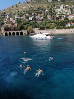 8. Алания (крепость, пляж и т.д.). Также легко добраться до Алании. Напротив отеля остановка, 3 лиры проезд и Вы в Алания-центре, оттуда мы пешком прошли до Клеопатры, сами ездили по канатной дороге в крепость и гуляли там. Билет "туда-обратно" на канатку для взрослых - 28 лир, детский - 14 лир. Рекомендую это делать утром (открытие канатки в 9.30) или вечером (работает до 23ч), т.к. нет палящего солнца, а все-таки это на высоте. Сама Клеопатра нас разочаровала. В этом году песок частично вымыло и оголились плиты. Но разок-другой в город проехаться можно – погулять по паркам, по ТЦ (если есть желание), а в остальном все, что нужно есть и в Махмутларе, и чаще по более выгодной цене. Кстати, магазин Вайкики открылся теперь и в Махмутларе. Так что тем, кто хотел туда попасть теперь не обязательно ездить в Аланию.