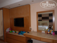 Техника работала исправно, один раз вызывали мастера на починку переключателя от душа, прибежал тут же, починил быстро. Мини-бар пополнялся регулярно недостающими напитками. По ТВ несколько российских каналов, в т.ч. Карусель, дети смотрели мультики после душа, флешку подключить было некуда.