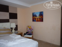 Изначально нас заселили в номер 37А2, внутри которого была запертая дверь в номер 37А1, а вид с балкона - черный вход в главный ресторан и анимационная зона. Все бы ничего, номер просторный, все в рабочем состоянии, чисто, но вот ночью через внутреннюю дверь нас будил плач малыша, а ближе к обеду через балкон весь номер затянуло дымом от гриля. Пришлось поменять номер на 4211 с видом на теннисный корт и футбольное поле. Здесь нашлись свои недостатки- сырость и сильный запах дез.средства, а также муравьи и комары, которые беспрепятственно забирались через приличные щели во входной и балконной дверях. Сырость со временем подсушили кондиционером (чередовали теплый и холодный воздух), запах выветрился, от комаров спасались фумигатором (попросили на ресепшн), а муравьишки так и жили с нами, хорошо, что их было не так уж и много.