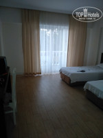 Заходим в номер с провожающим (показывает-сдает), первый этаж трехэтажного корпуса: покрытие пола плитка, 2 односпальные кровати застелены чистым белым бельём, 2 тумбочки прикроватные, телефон (нигде нет инфы, как им пользоваться хотя бы, как позвонить на ресепшен), туалетный столик, на нем маленький телевизор (провожающий включает в розетку, нажимает на пульт, телевизор сгорает у нас на глазах, провожающий куда-то звонит, обещают починить-заменить сегодня... Напоминали на ресепшен 2 раза, 1 отдельному гиду... Так ничего никого не дождались). Ещё на столике 2 стакана и пепельница. Конциционер работал, минимальная температура его работы 18°, не особо справлялся с охлаждением комнаты. На входе шкаф в нем имелись: вешалки, сейф (платный, не использовали, ничего не украли); минибар, пустой,слабо охлаждающий. Рядом со шкафом скамейка. Остекление панорамное, откатная дверь исправна, на балконе столик+3 стула, натянуты 2 веревки для сушки. Ванная комната: 2 стакана, жидкое мыло, гель для душа, 3 рулона туалетной бумаги, 2 маленьких+2 больших полотенца, 1 для ног (всё целое, исправное.) Неприятных запахов не было. Усталость+ приличный номер = решению, расслабиться, остаться в этом номере и получать удовольствие от отдыха.