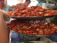 Питание замечательное, всего много, все и не попробуешь. Из мяса, конечно в основном курица и индейка, но из них готовят каждый день по новому, есть разная рыба, от большой до маленькой. Все изыски обычно у выхода из ресторана, где столики на воздухе. Есть диетические блюда (курица отваренная). Есть блюда для детей: каши разные, не как дома, конечно, но всегда что-то есть.