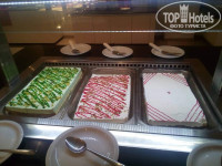 К еде претензий не возникло, место где происходит раздача еды не большая, но всегда было что выбрать. Курица, говядина, ягнёнок, котлеты, мидии, люля на шампуре, филе рыбы под соусом, жареные кольца кальмара, лука. Во время обеда и ужина подходил официант, принимал заказы на напитки. До сладкого места уже не хватало, за отдых попробовала шоколадный торт не бисквит и чизкейк на баре мне очень понравились вкусные. Из фруктов яблоки, груши, бананы, киви, цитрусовые. Клубнику покупали на улице. Мороженое в свободном доступе.