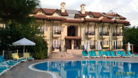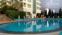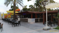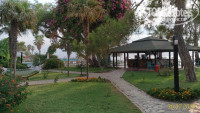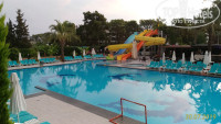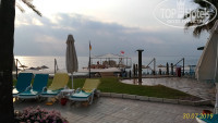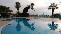 Территория самого отеля маленькая, но все необходимое присутствует. У бассейна и на пляже свой бар, дневной перекус (на пляже – фастфуд), мороженое в дневное время (в основном корпусе), лепешки гезлеме (на пляже), пончики к вечеру (на пляже). Лежаков на пляже много, но часть – под тентом, часть – под грибками (но они маленькие и неудобные), а часть – под открытым небом (на палящем солнце). Свободные есть всегда, но в неудобных местах. Есть пирс с лежаками – матрасами под тентом. Вход в море – крупная галька и камни (желательно обувать аквасоки), дно – крутое (глубина уже метров с 5-ти от берега). Лучшее время для купания – утро (на море штиль и вода чистая), позже уже начинается волнение и частенько ветер (а он всегда с моря) приносит всякий мусор. Т воды в море была 28 градусов, в бассейнах – около 30 гр. Бассейнов два – у основного корпуса (побольше) и у пляжа (поменьше). Бассейны маловаты, в «час пик» тесновато.