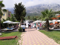 Территория отеля не большая, но уютная и очень аккуратная. есть бассейн(в котором проводятся игры,акваэробика, пенные вечеринки).(бассейн ежедневно чистится). Детский уголок с качелями и горкой, амфитеатр(где проходит анимация и днем детский клуб). У бассейна есть бар с напитками. Так же ежедневно делают пиццы и лепешки, очень вкусные!